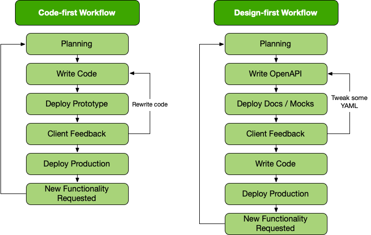 Whilst there are a few more steps, the time invested on agreeing a contract early on brings massive time benefits through the rest of the API lifecycle.