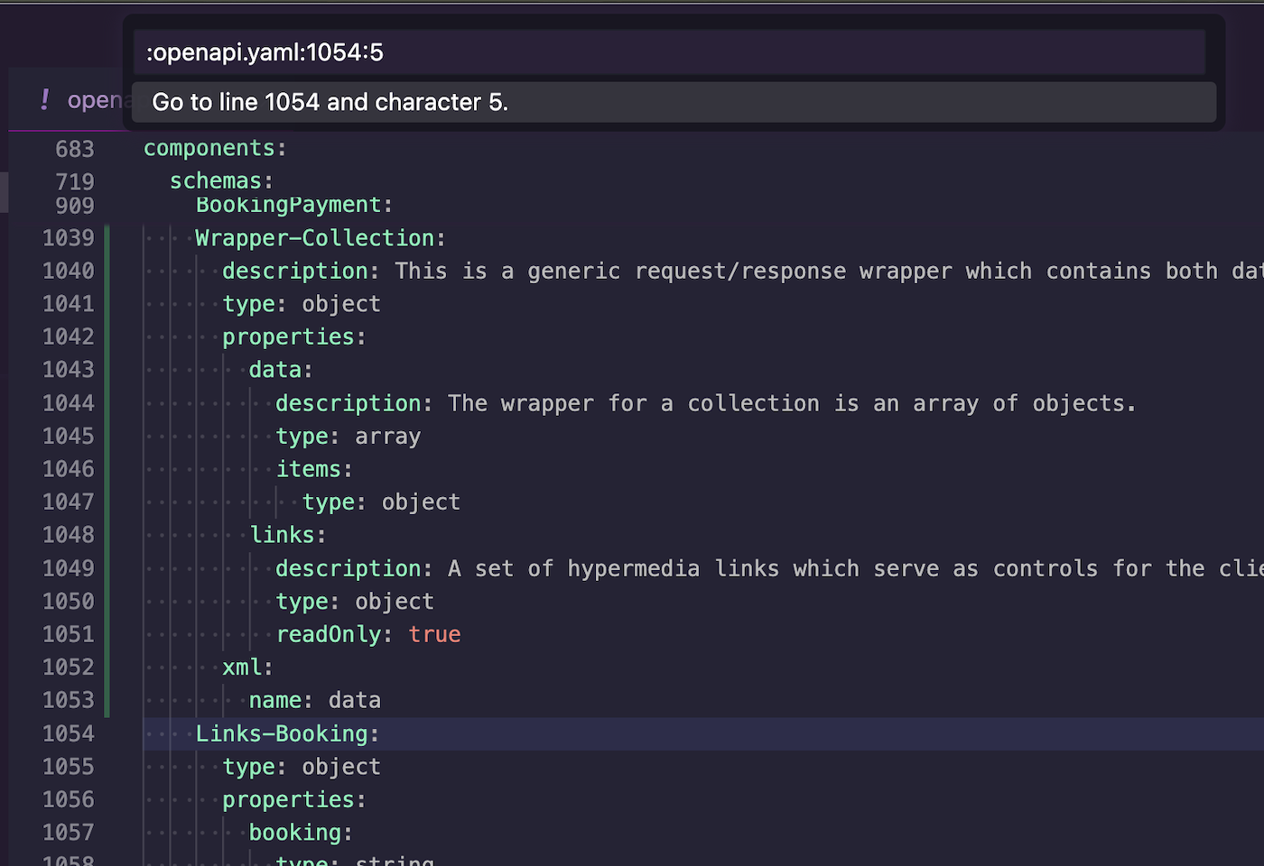 If you spot an error in here you would like to fix, you can use the Location to find out exactly where it is. openapi.yaml:1049:5 means it’s in openapi.yaml on line 1049 and it’s taken a stab at guessing which character of the problem, which in this case is 4 spaces of indent plus where is the thing in the 5th character… no worries, close enough.
