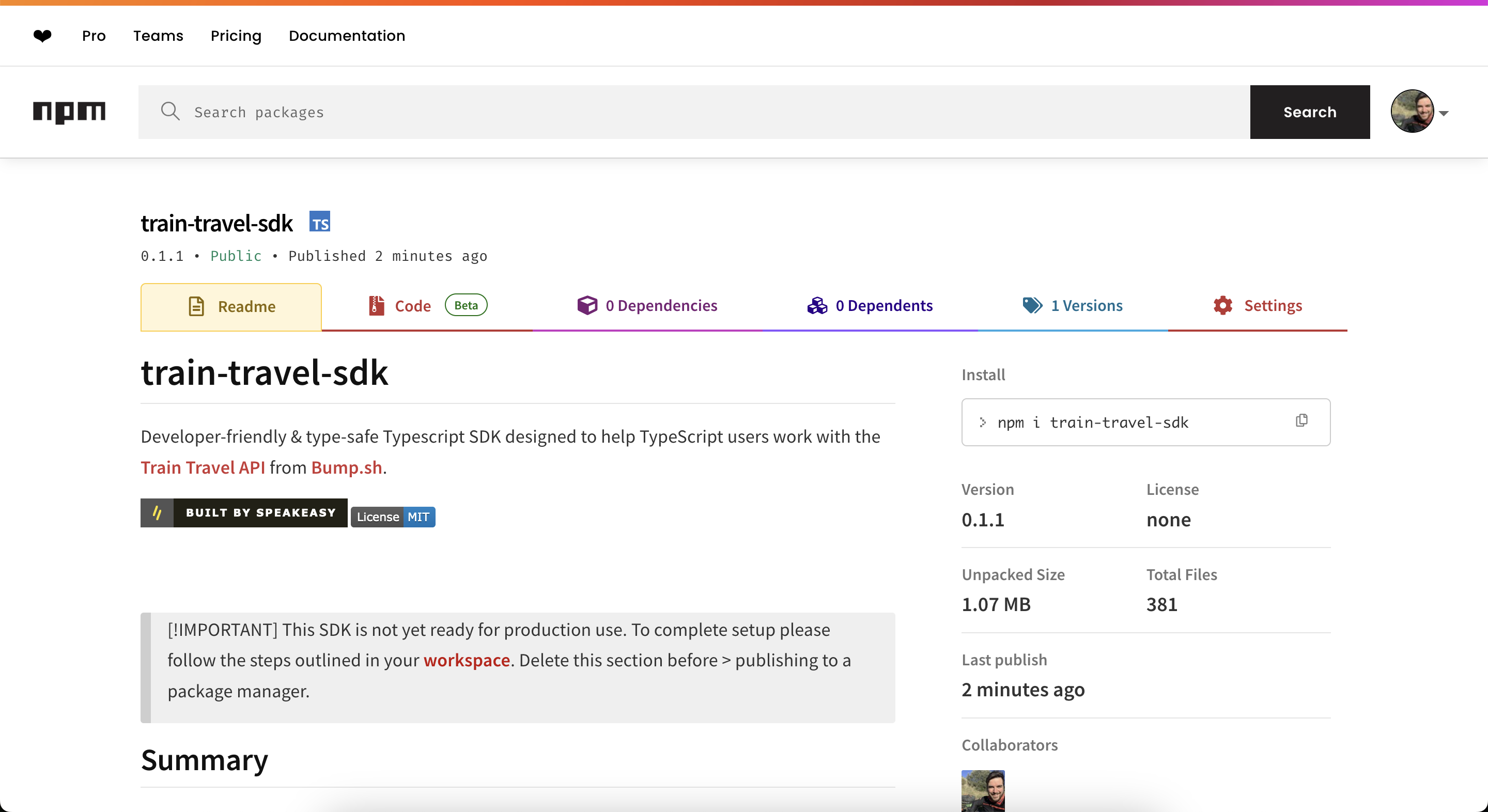 Now our train-travel-sdk actually exists online, and you can see how it’s going from here.