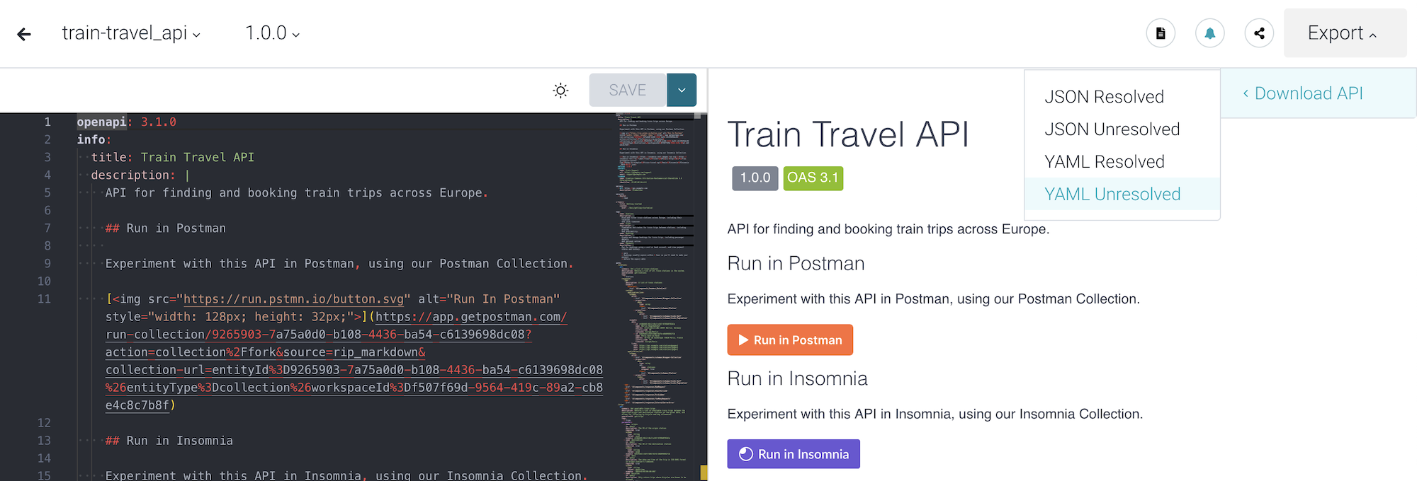 One thing that SwaggerHub does well is providing an OpenAPI editing experience. Users write YAML/JSON in an editor window on the left, and see a preview of that OpenAPI as documentation on the right. This gives new users of OpenAPI more confidence, because they can see their changes as they work on it.