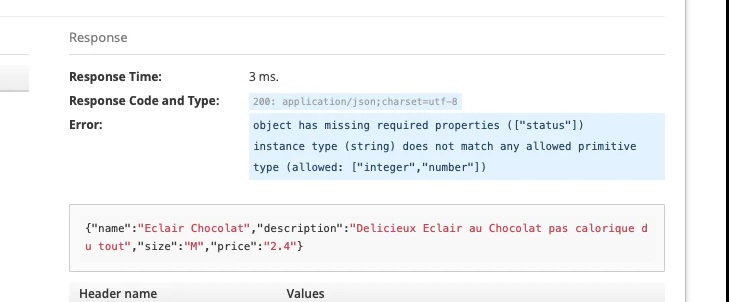 Here the contract testing has highlighted an important mistake: OpenAPI says that a 201 is supposed to be returned, but a 200 is being returned instead! Is the API wrong or is the OpenAPI wrong? You can now decide, and change one or the other, then run the tests again.