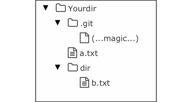 The example below has two files, “a.txt” and “dir/b.txt”, together with the magical “.git” directory.